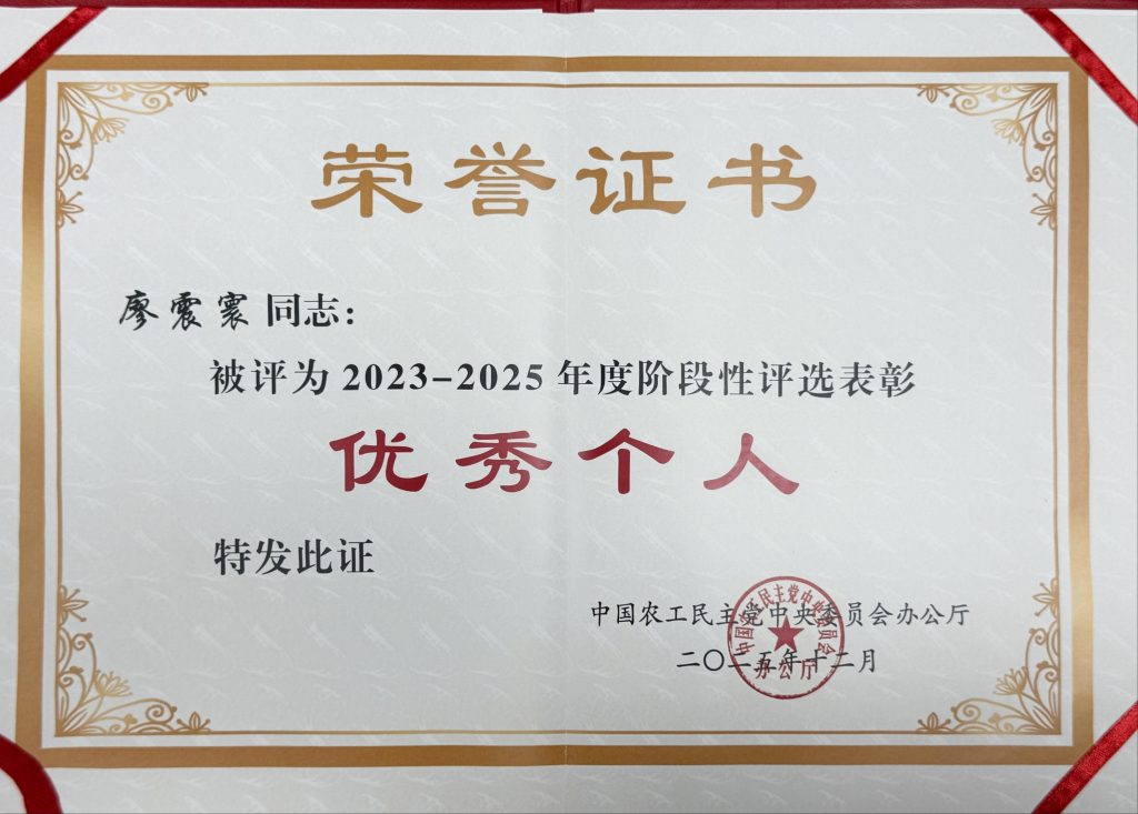 会议开展2023-2025年度阶段性评选表彰,我学会专职副会长、执行秘书长廖震寰获评“2023-2025年度阶段性评选表彰优秀个人”。